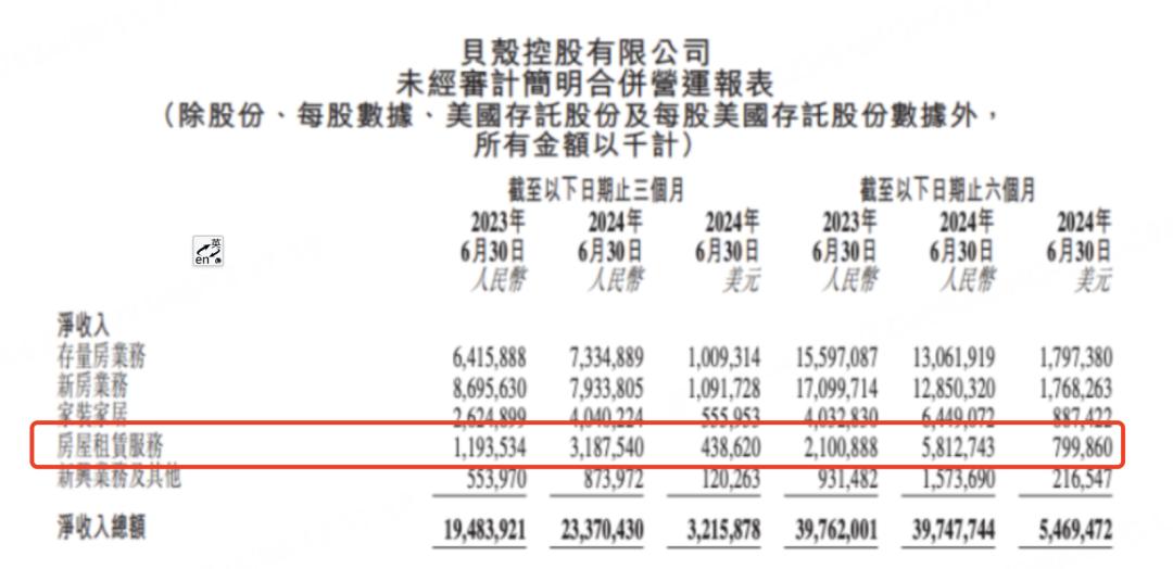 2024年Q2,贝壳房屋租赁服务业务营收32亿元,同比暴增167.1%。