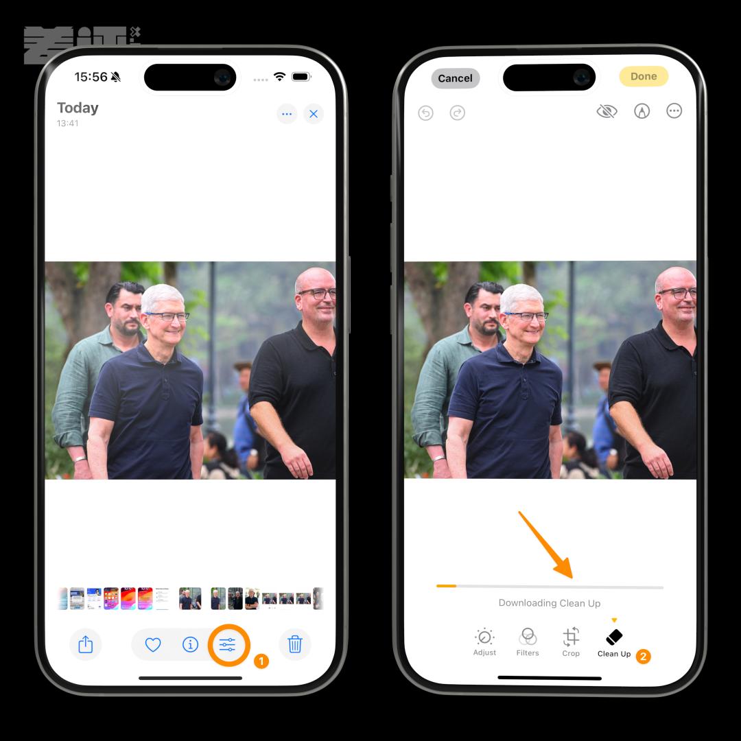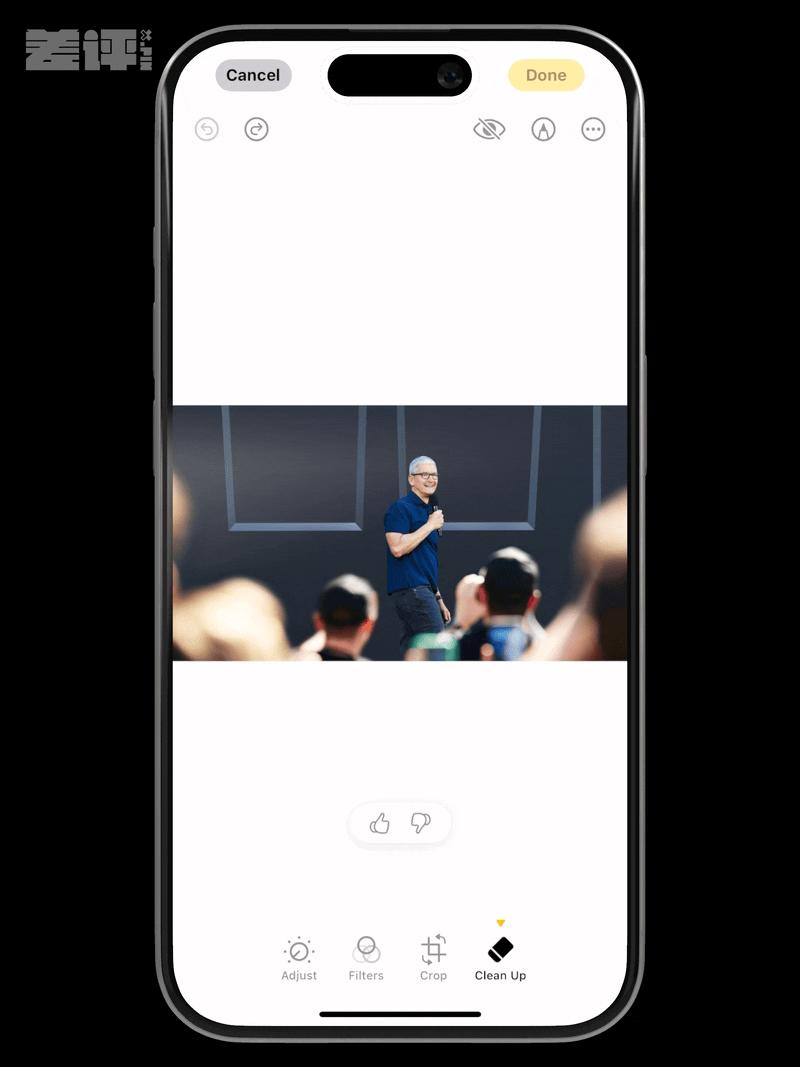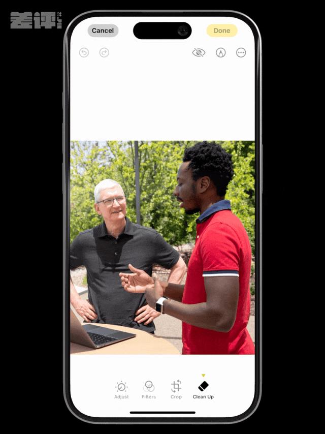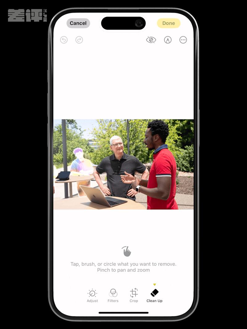 第二个是给照片 App 加了一个叫 Clean Up 的编辑功能,作用就是消除人物。