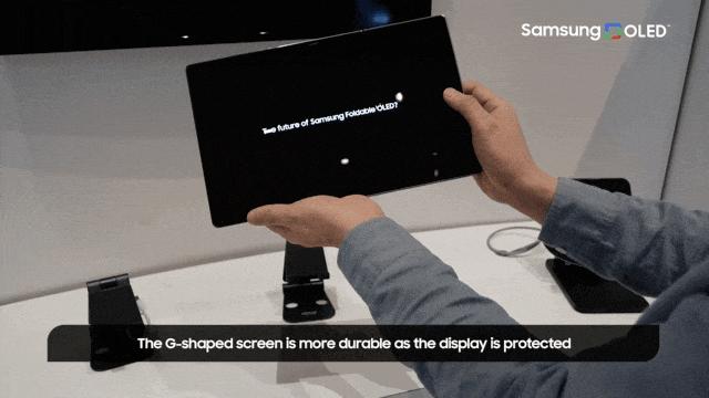 另外这款名为三星 Flex G 的三折叠手机,采用将两边的手机屏折向中间的「G」字折叠方式,这显然对铰链、屏幕提出了更高的要求,增加了量产的难度,看上去也更加笨重: