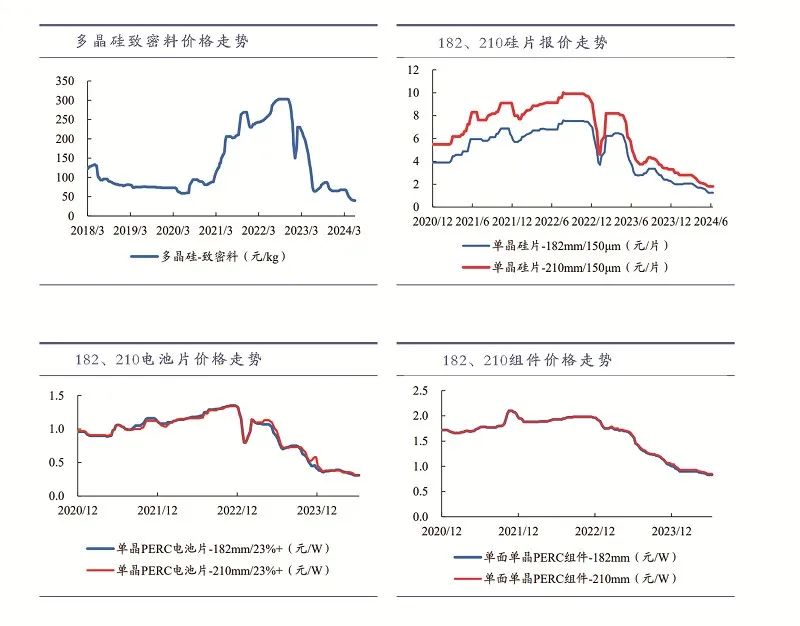 价格战也毫不意外地出现了。据同花顺数据,硅片主流品种的平均价格,2023年产品平均降价超过五成。目前,光伏组件的主流价格由2023年初的1.8元/瓦降至年底的0.9元/瓦,降幅达到50%。