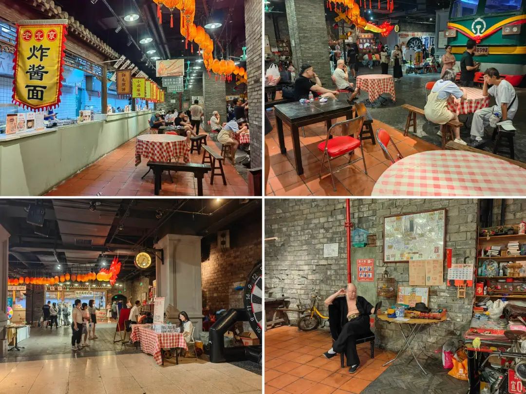 许多“文和友分友”模型都存在“拿来主义”的情况,并没有特别的原创性。以至于会有一种“全国都是文和友”的错觉。常见于由商业地产为主体开发的项目中,简单讲就是“复古空间+老字号小吃+多业态”的套路。而项目之间的差异也不明显,主要体现在“规模和运营的精细度”上,比如场景的复刻程度、精细程度,比如运营细节(叫卖方式和表演形式等)。