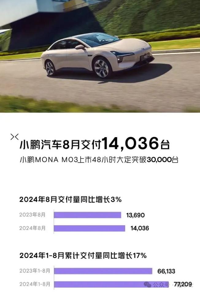 小鹏方面表示,新上市的10万元级别车型MONA MO3上市48小时大定量突破3万辆。