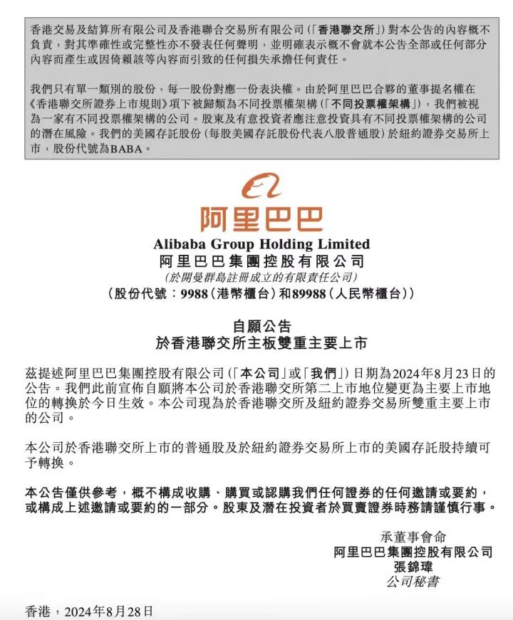 这里需要明确的是,阿里早已在香港完成二次上市,而本次再回港是形成美国、香港双重主要上市的格局。