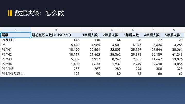 在A·HR阶段,人力资源管理部门可以通过智能化模型推算未来几年后,不同级别的人数占比情况,及时发现人才结构的问题,为企业未来人力资源战略决策提供有效的决策支持,解决“怎么做”的问题。