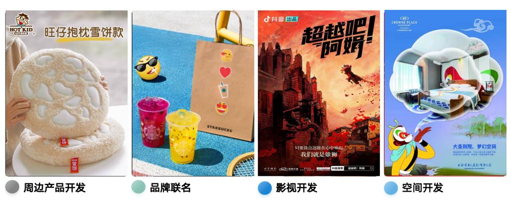 关于这个问题,相信每个月都能掀起一波热度的产品联名、要靠抽签获得购买资格的“川沙妲己”以及需要提前几个月预订的“哈利波特”主题酒店已经告诉我们答案了。随着文化消费市场越来越旺盛,IP运营所孕育的文娱成果不仅能够促使IP与粉丝进行更高频的互动,还能为IP注入更多新“玩法”、拓宽传播渠道,从而吸引更多的消费者。近期,比较热门的IP运营主要包括以下几种方式: