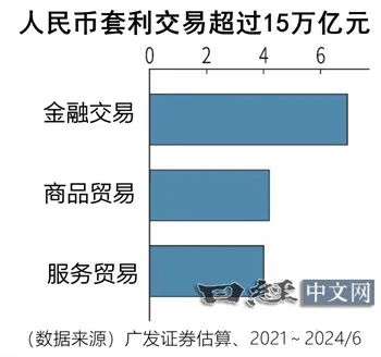 关于人民币套利交易的规模,存在多种看法。中国大型证券企业广发证券根据中国的资金流出规模进行分析后推算指出,卖出人民币持有美元等高利率货币的人民币套利交易在2021年~2024年6月共计达到15.15万亿元。