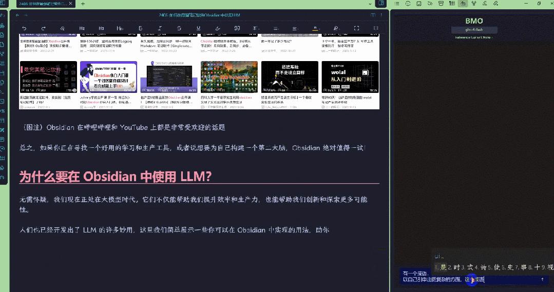 安装和使用 BMO Chatbot 和 Ollama 插件,让我们能够轻松地将 LLM 融入 Obsidian,从而实现笔记分析、总结、标题生成、内容续写等多种功能。这不仅能让我们节省时间和精力,还能激发我们的创造力。