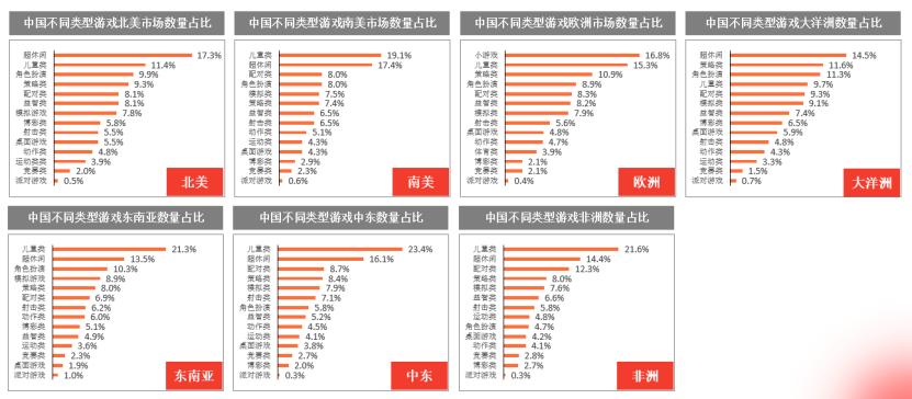 (六)全球主要区域不同中国游戏类型占比
