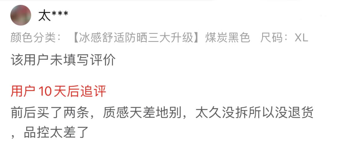 在一些白牌瑜伽裤的售后评论区,经常被吐槽的质量问题还有:面料不够舒适、起球、设计剪裁一般、太紧、卡裆、卷边、洗几次就变形……有些甚至穿一次,就变成了“次抛”瑜伽裤。