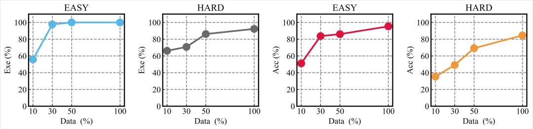 研究人员使用了近500条高质量训练样本来微调CodeGemma-7b,从而观察不同训练数据量下,引擎性能的变化。