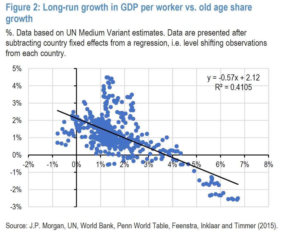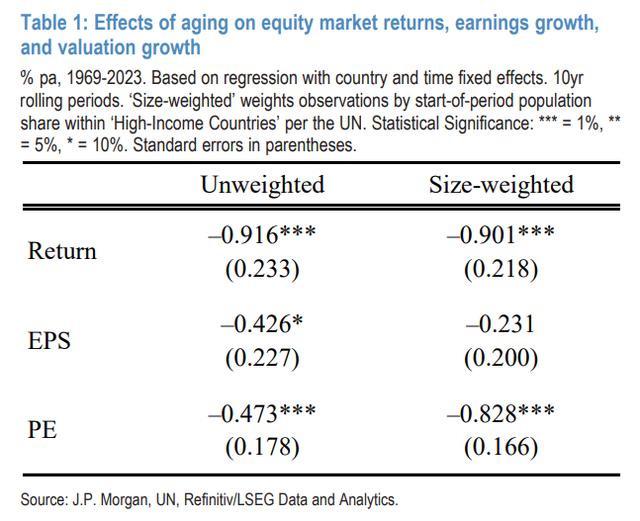 昨天看到摩根大通一个有意思的报告,《Long-term impact of aging on equity markets》(老龄化对股市的长期冲击) 。