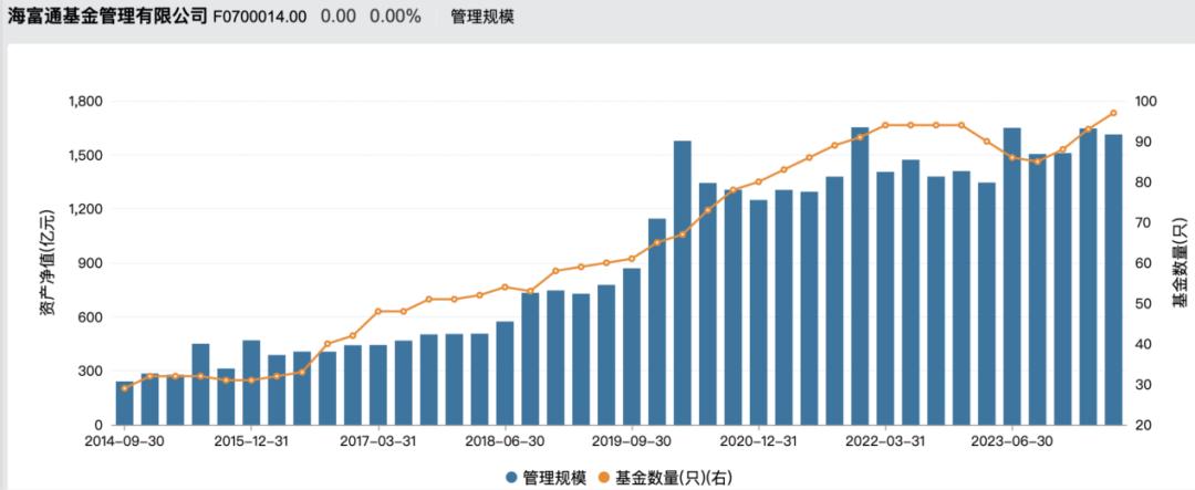 Wind数据显示,海富通基金成立于2003年4月,是中国首批获准成立的中外合资基金管理公司之一,控股股东为海通证券。截至今年二季度末,海富通基金旗下资产管理总规模达到4221亿元,其中,非货基金规模为1145亿元。