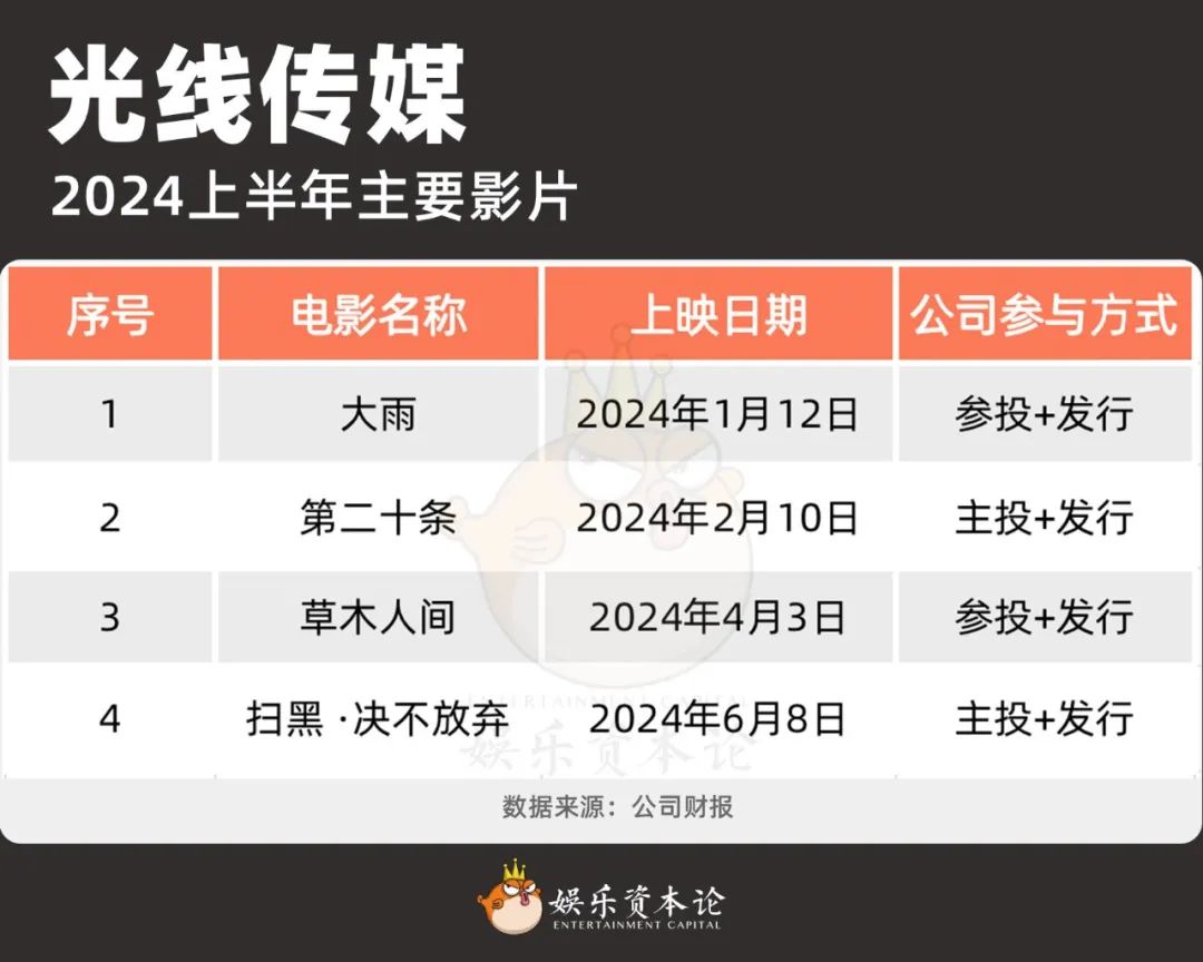 光线传媒2024上半年主要影片