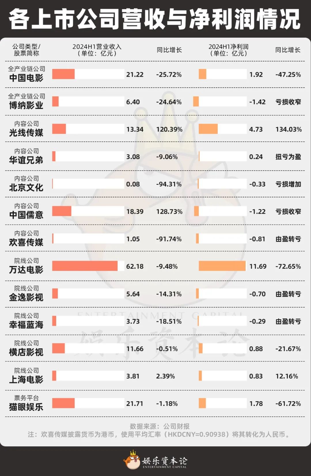 13家上市公司基本情况,资料来源:公司财报,猫眼专业版
