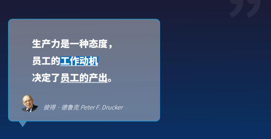 德鲁克认为生产力是一种态度,员工的工作动机决定了员工的产出。虽然很多时候我们认为这可能是员工的能力,但是我们发现在招聘一个人时,他们的能力差距不大,而工作结果有时候差距比较大。