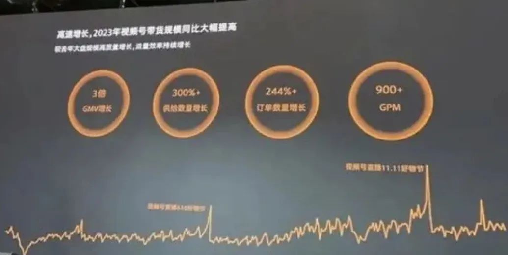 在年初的2024微信公开课上,腾讯公开披露,2023年视频号直播带货GMV(商品交易总额)实现近3倍增长,视频号订单数量激增超244%,GPM(平均每一千观众下单总金额)高达900元以上。