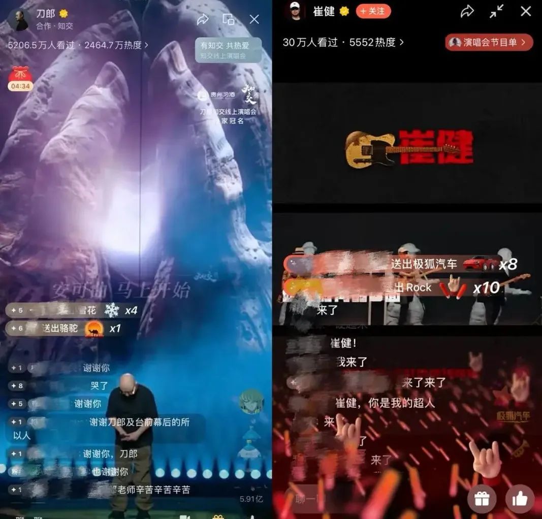 这些演唱会开播后,都收获了千万量级的人气。比如崔健首场线上演唱会就吸引了超过4500万用户观看,点赞互动量破1亿,刷新了此前视频号直播演唱会的观看纪录。