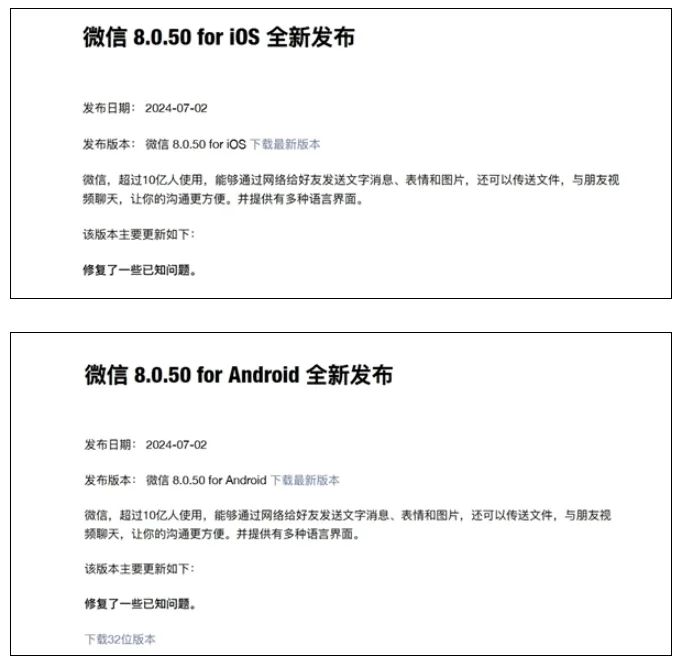 随着这些小道消息愈演愈烈,直到近期,关于“下一代iPhone 16用不了微信”的言论彻底爆发,引起了所谓二选一的猜测。好在随后大家发现,隔壁安卓也已经有两个月没有更新了,这才打消了大伙的疑虑。