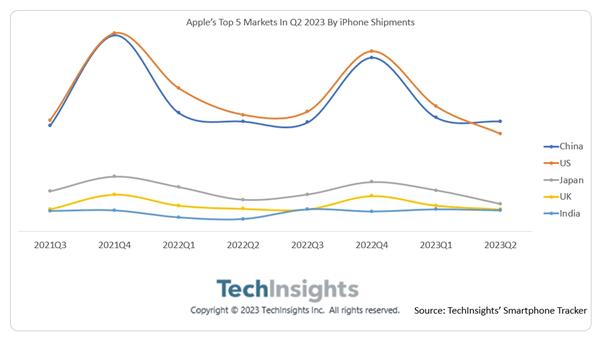 这是一笔很大的损失,近些年,中国市场几乎成了苹果最大的摇钱树,特别是在2023年二季度,中国首次超过美国,成为 iPhone出货量最大的单一市场,用户超过2.5亿,占全球总用户30%以上,足以见得中国市场的重要性。