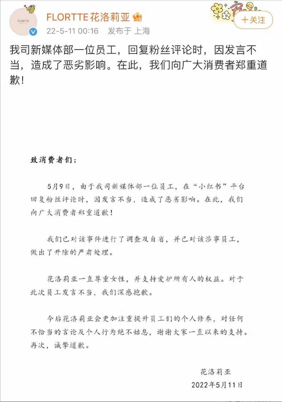 尽管公司随后发布致歉声明表示,公司部门员工发言不当,已对涉事员工进行了开除处理。但不少消费者仍认为,“感觉没被尊重,品牌体验感不好”。