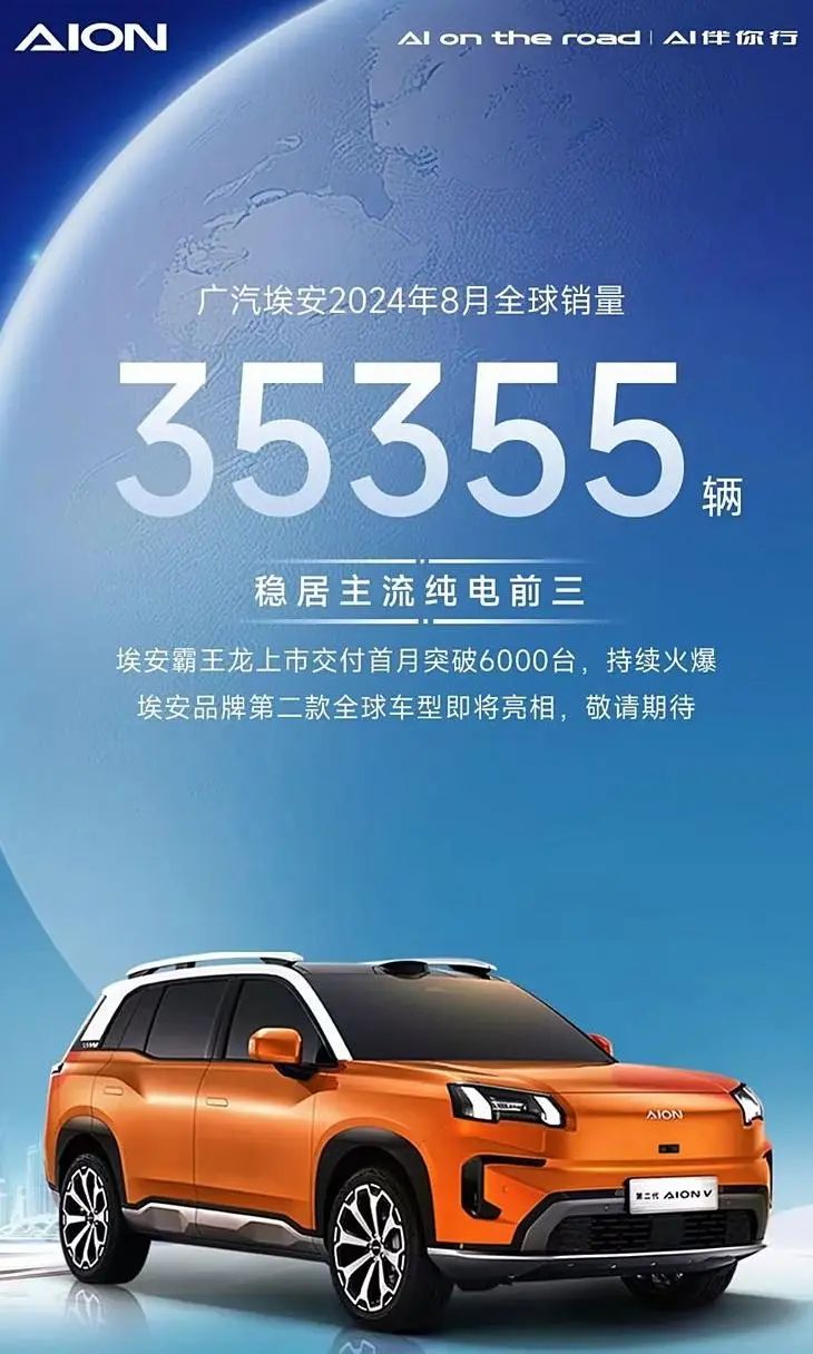日前,埃安公布了其2024年8月全球销量为35355辆,埃安V霸王龙上市首月交付突破6000台,此外埃安品牌第二款全球车型即将亮相。
