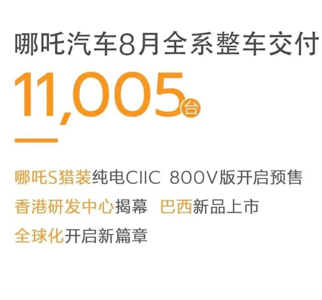 日前,哪吒汽车公布8月交付数据,共计交付新车11005台,与7月交付数据基本持平,7月哪吒交付新车11015台。
