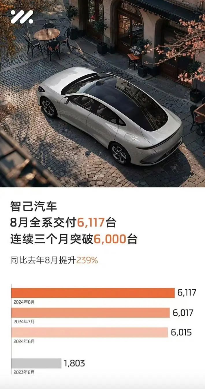 日前,智己汽车公布了其8月全系交付新车6117台,连续三个月突破6000台,同比去年8月提升239%。