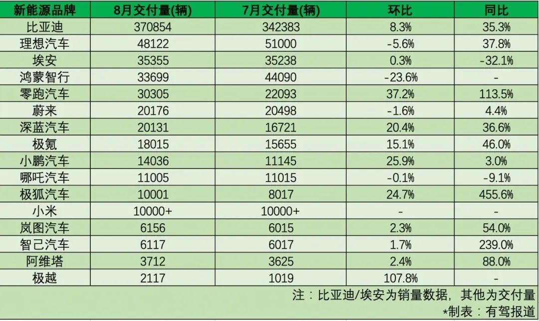 近日,各家新能源品牌纷纷公布8月交付量数据,总体呈现出欣欣向荣的趋势。其中零跑汽车首次突破3万台;“蔚小理”、极氪、小米依旧保持稳定节奏,而此前较为挣扎的极越也走出泥潭,逐步向好。销量的增长,无疑为接下来的金九银十,注入更强信心。