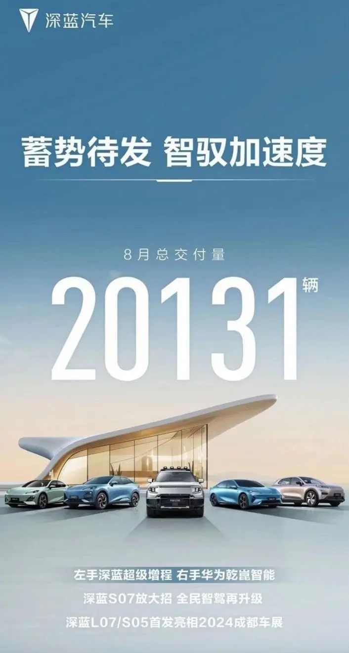 近日,深蓝汽车公布了其最新交付数据,2024 年 8 月总交付量为 20131 辆,同比增长 36.6%、环比增长 20.4%。