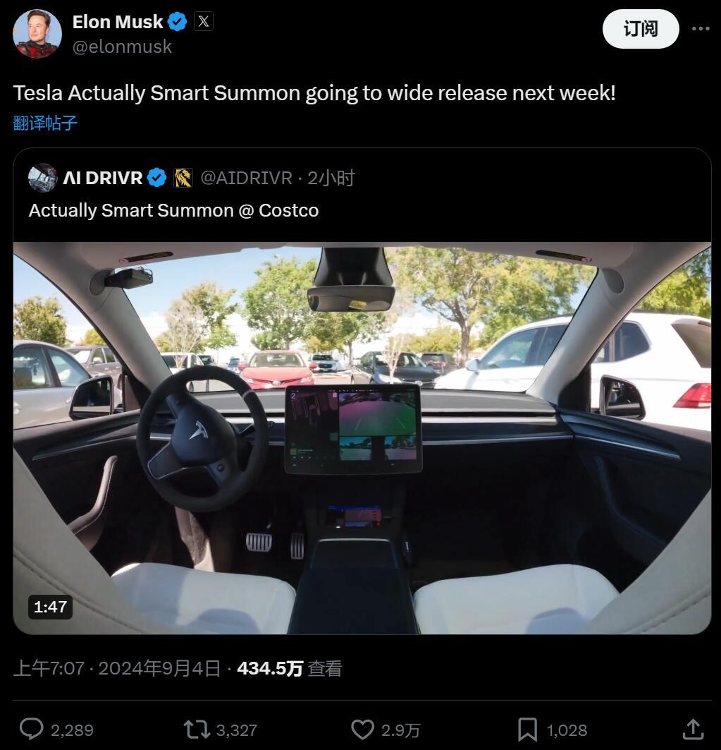 马斯克表示,智能召唤最初计划于 2022 年 9 月底推出。后来 ASS 功能也曾预告将在 2023 年底和今年 4 月推出。