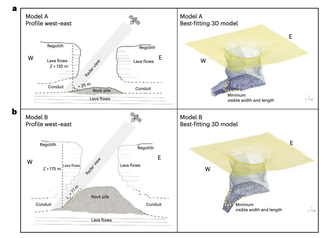 该洞穴位于地表以下约 150 米处,可能呈平坦或是呈最大45度角倾斜。|NASA、University Of Trento