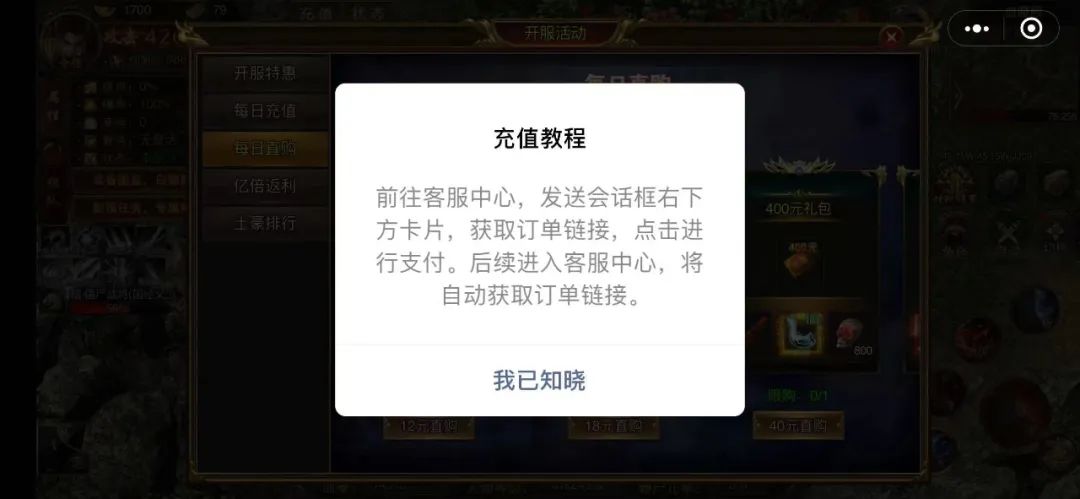 这是因为在在苹果封闭的iOS生态下,包括微信、抖音等在内的小游戏产生的内购收入,没有和App Store里的游戏应用一样,接入苹果的支付系统,开发者可以绕过苹果将用户引流至外部支付系统,躲过高达30%的“苹果税”。比如微信小游戏,用户可以通过游戏自带的客服中心入口,进入客服会话页面进行充值,从而绕过苹果自带的支付系统,规避被苹果抽成。