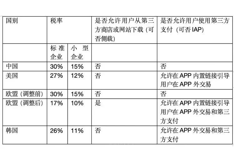 媒体统计,苹果税在不同国家或地区的标准