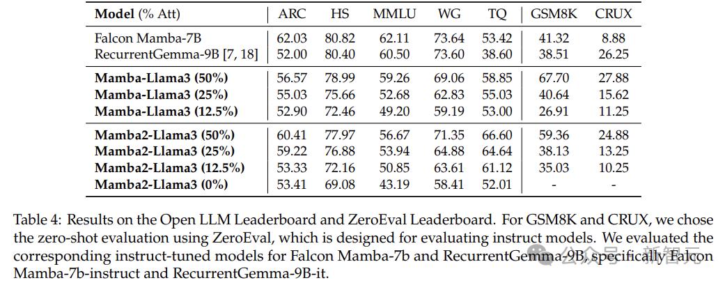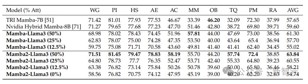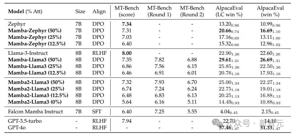 最终,研究人员将Zephyr-7B、Llama-3 8B提炼为了线性RNN模型(混合Mamba和Mamba2),且性能与蒸馏之前的标准模型相当。