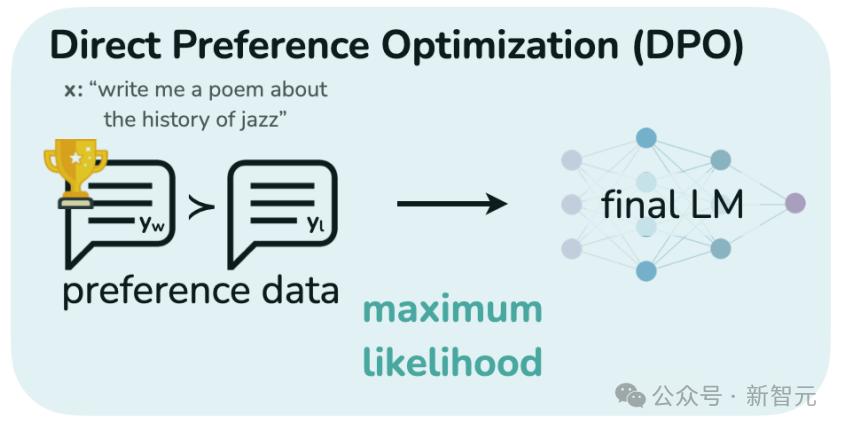 偏好模型的奖励函数定义取决于所使用的方法,本文采用直接偏好优化(DPO),通过直接梯度更新有效地到达优化目标。