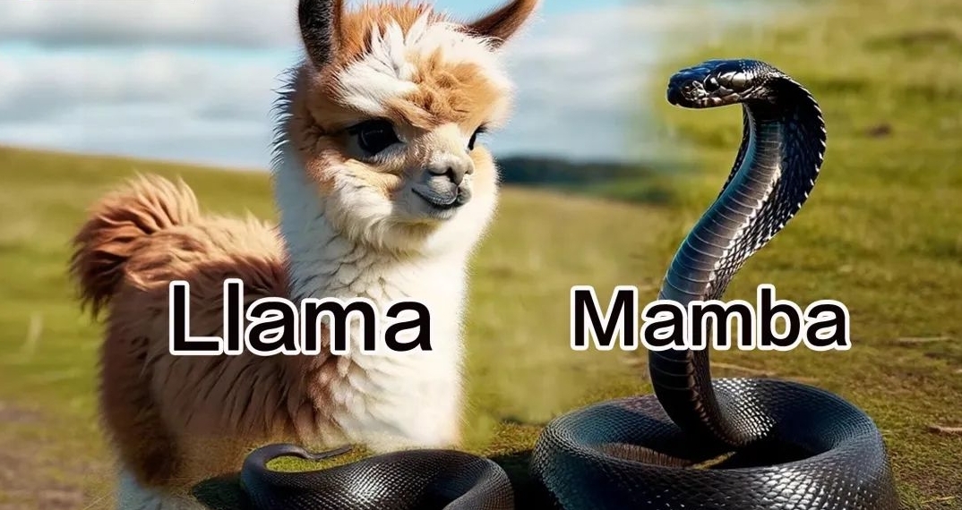 右边的小羊驼代表Llama,而左边的蛇(Mamba)也是我们的老熟人了。