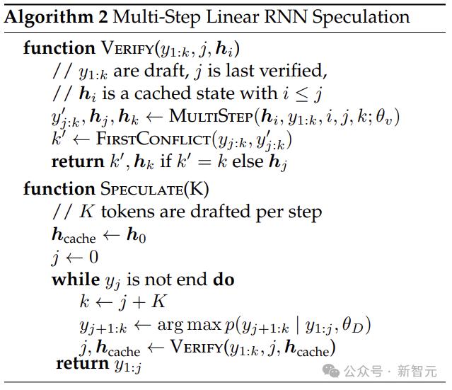 每次生成K个草稿输出,验证模型通过MultiStep函数返回K个真正的输出,以及上一次校验成功位置的cache(中间状态hj)和本次最后位置的cache(hk)。