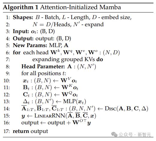 除了用线性RNN层(Mamba)替换掉注意力头,还有一些组件需要处理,比如跨头共享键和值的分组查询注意力(GQA)。