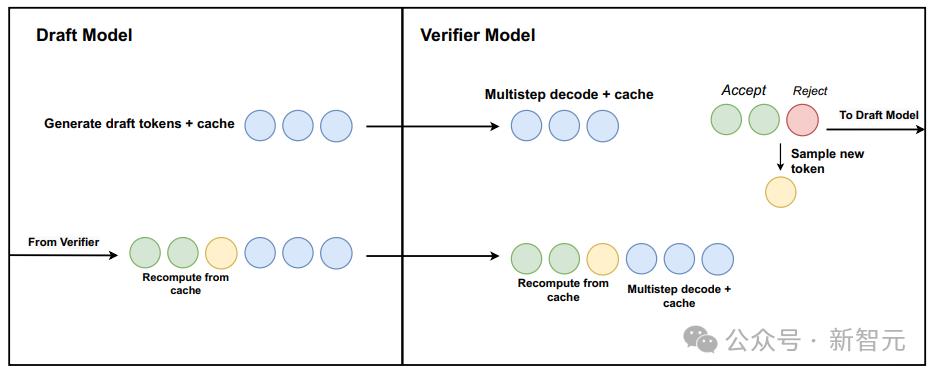 简单来说就是每次使用小模型(draft model)生成一组输出,然后大模型(verification model)验证这一组输出,根据验证匹配的位置来更新需要保存的中间状态。