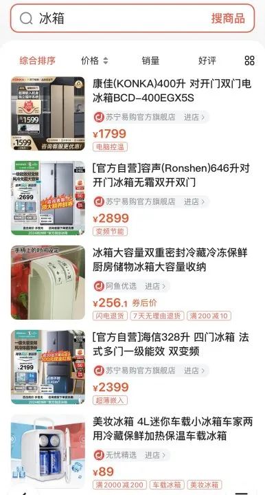 此前,虽然百度早已涉足电商领域,但百度优选的思路,主要是通过与其他电商平台合作。上线之初,百度优选便与苏宁易购达成合作,全面接入其全品类商品。当用户在百度优选搜索“冰箱”时,搜索结果的前五位中,有三项商品来源于苏宁易购,而另外两项商品则来自于入驻百度优选的商家。