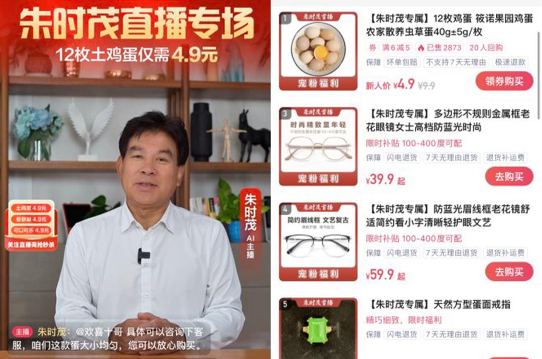 “今天给大家带来的土鸡蛋,是来自农村的走地鸡。”得益于AI技术的延伸, 即便是凌晨两点,朱时茂的直播间依旧活跃,AI主播朱时茂不知疲倦地推介着橱窗内的17款商品。选品依然紧紧把握中老年人群体的需求,如土鸡蛋、老花镜、保健用品等,价格多不超过百元。
