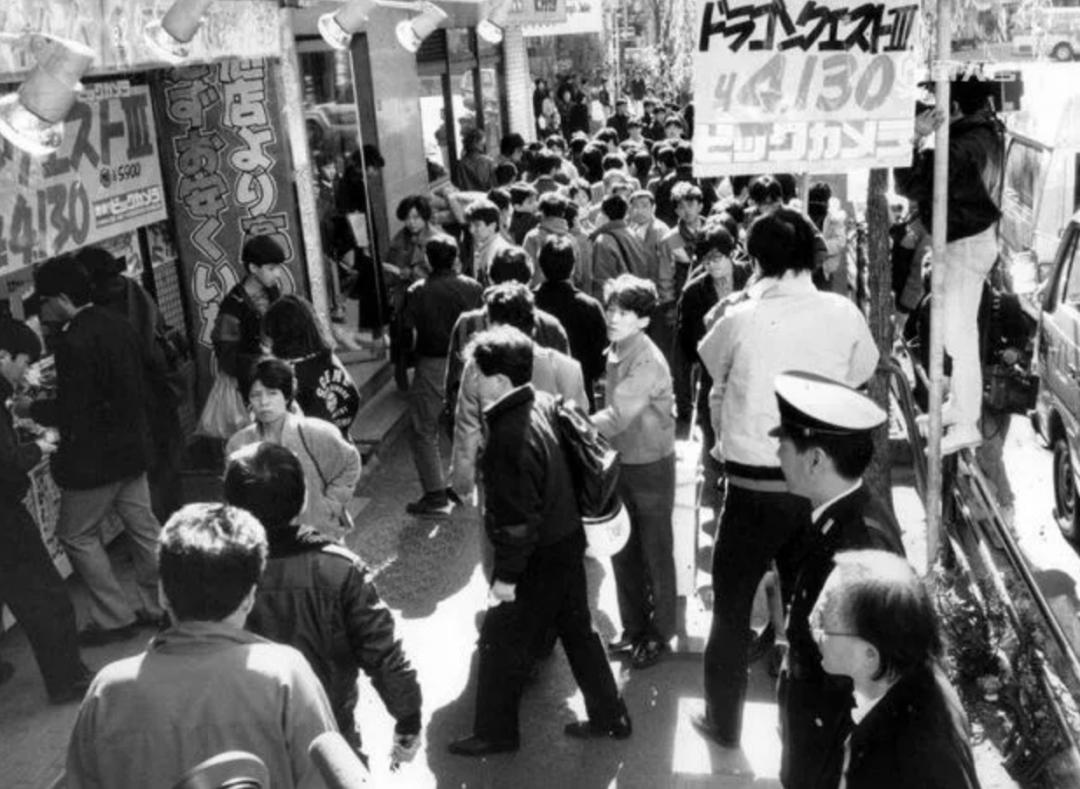 为《勇者斗恶龙3》排队的日本男青年(图源:Fami通)
