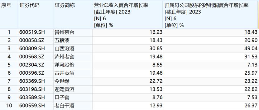 图:白酒市值TOP10业绩年复合增速,来源:Wind