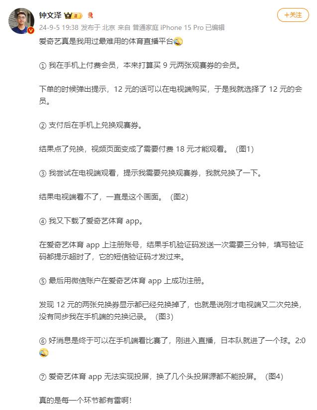 连钟文泽这种「老好人」,都忍不住发微博怒喷爱奇艺。