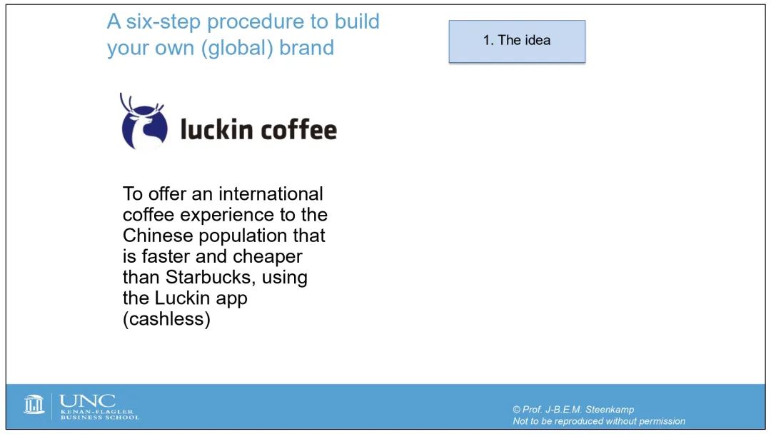 第一步骤,首先要有一个想法(The Idea)。在构建一个品牌之前,你必须要先有一个想法或者灵感。比如瑞幸咖啡,它希望为中国人提供国际化的咖啡体验,同时,比星巴克更快捷、更便宜。