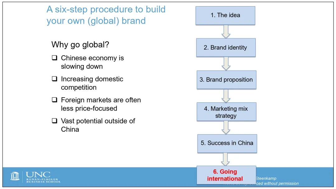 回到六步骤的最后一步,对于成功品牌而言,就是进入国际市场(Going International)。这一步有多重原因,虽然中国是一个巨大的市场,但中国之外的国际市场实际上更为广阔。