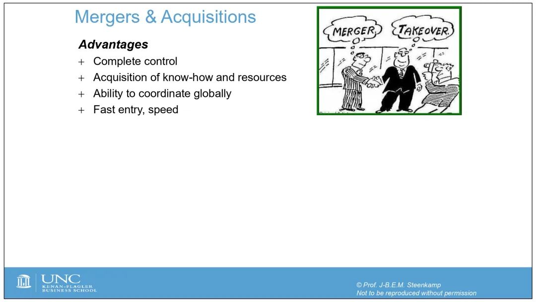 并购具有多种优点。首先,我们可以实现完全控制,即收购企业后,拥有100%的所有权。其次,可以获得专利支持和经验。第三,通过并购可以实现全球协同合作,进入美国、英国或德国的商超系统,这对中国企业来说是一个挑战。第四,收购本地企业后,我们可以迅速进入当地销售网络。