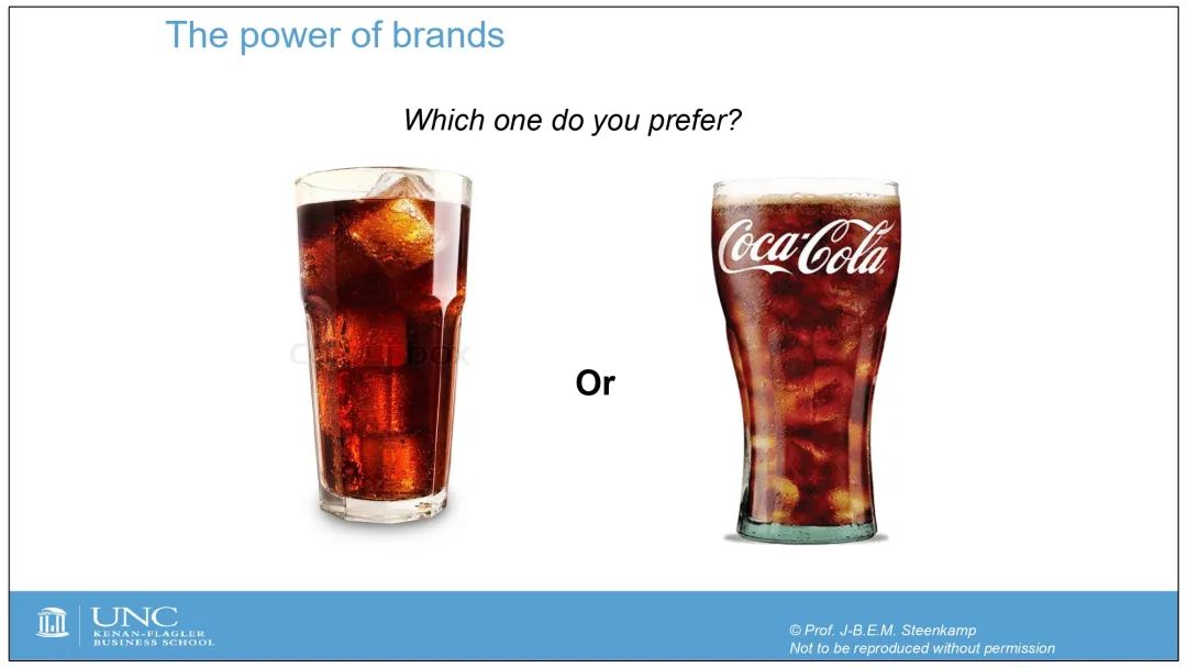 在分享开始,我先举一个小例子。我这里有两杯可乐,左边是一个没有品牌的汽水饮料,右边是可口可乐,你会选哪个?