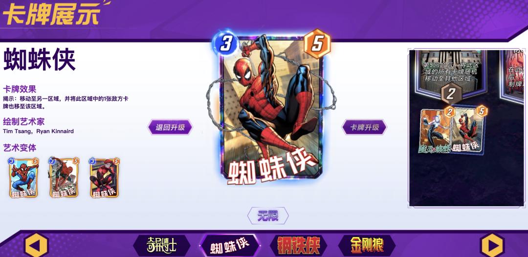 卡牌角色也是我们的老熟人了,蜘蛛侠、美国队长、钢铁侠等一大堆英雄出场,老漫威粉看了狂喜。