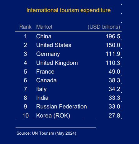 - 中国预计将超越美国成为全球最大的旅游市场,而印度则预计将升至第四位。